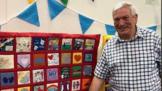 Chatting with Fran Taylor and other members of Harrogate Scrubbers about the group’s memory quilt.